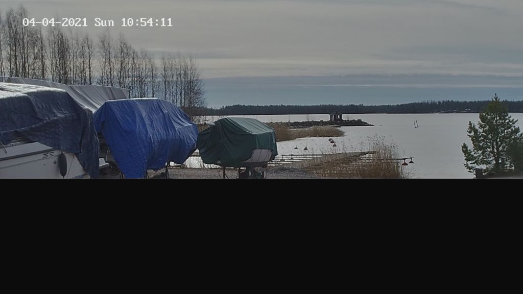 På båtföreningens hemsida finns en väderbild som uppdateras nästan varje morgon. Där kan man, om det inte är för disigt, följa med isläget. Idag, påskdagen, ligger isen vit på fjärden. I morgon skall det regna hela dagen, man får hoppas att det får isen att ge med sig.