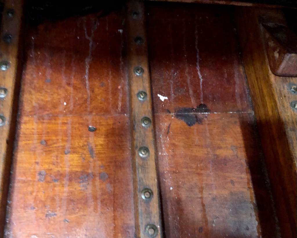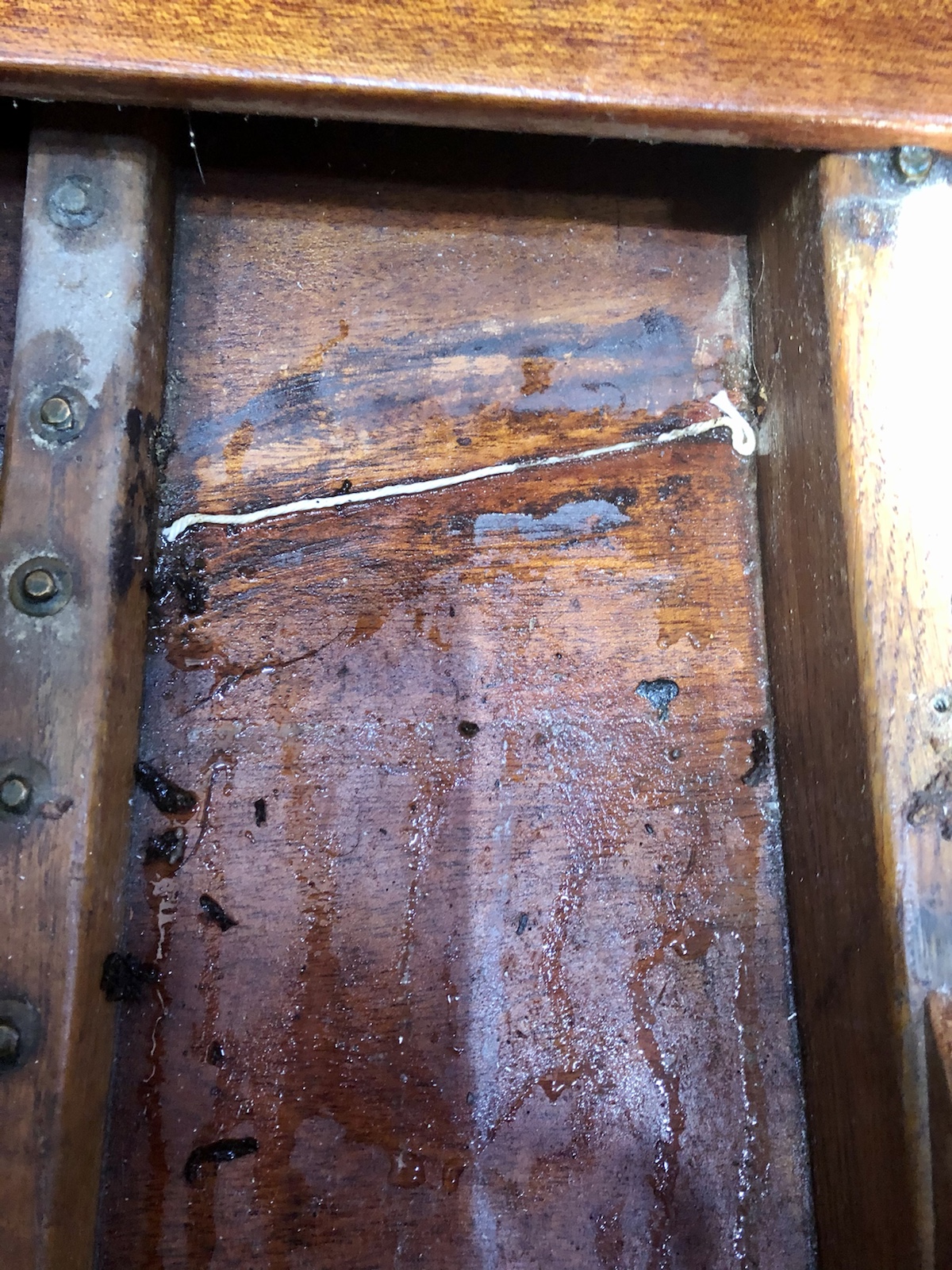 Regnvatten har igen kommit genom gluggen i luckan på fördäck, den tätas likaså.