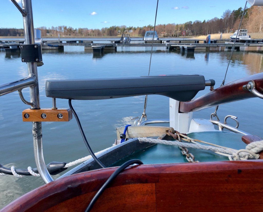 I brist på annat att göra installeras det fina fästet för autopiloten som Micko har tillverkat.