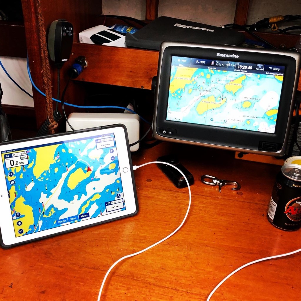 Dagens data antecknas i loggboken. Den nya plottern har han inte ännu full koll på. Det blir att studera under färden.