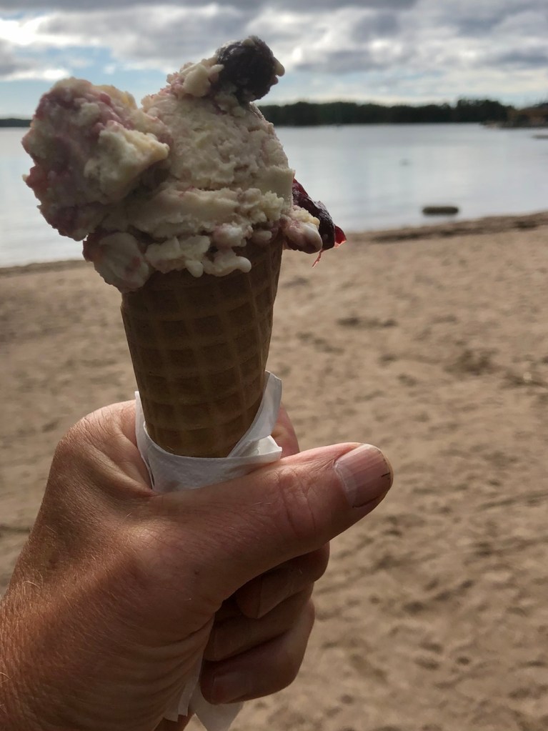 En körsbärsgelato från kiosken på stranden unnar han sig.