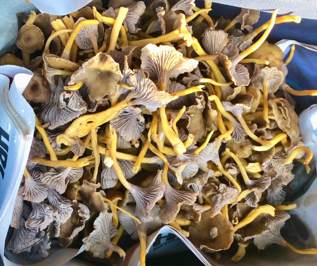 När värmetillförseln är säkrad beger sig pensionären ut i svampskogen. Nu har trattkantarellerna börjat dyka upp på allvar. De finns överallt! På nolltid har han korgen full.