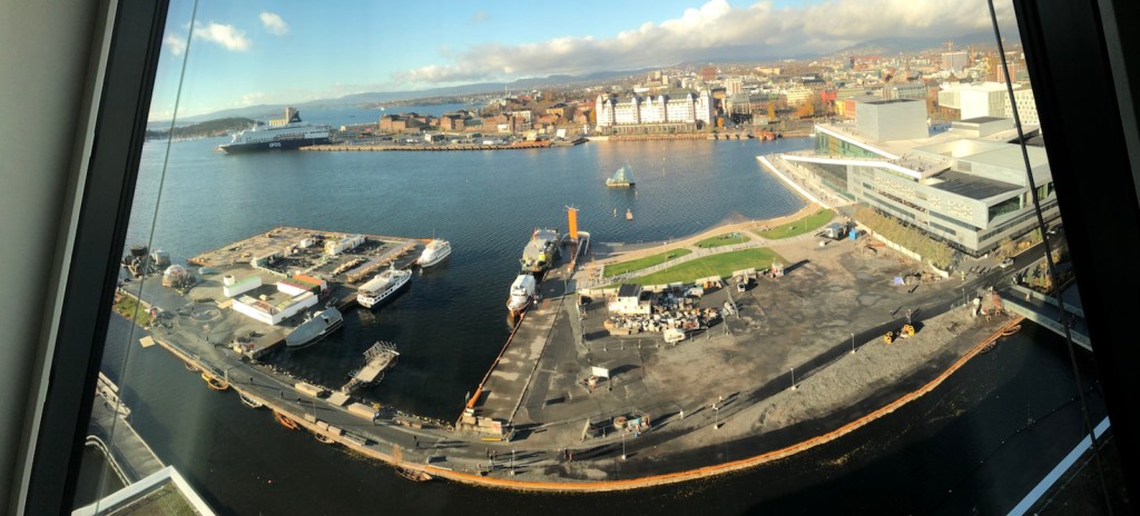 Från de översta våningarna har man en fin utsikt över Oslo och hamnen.