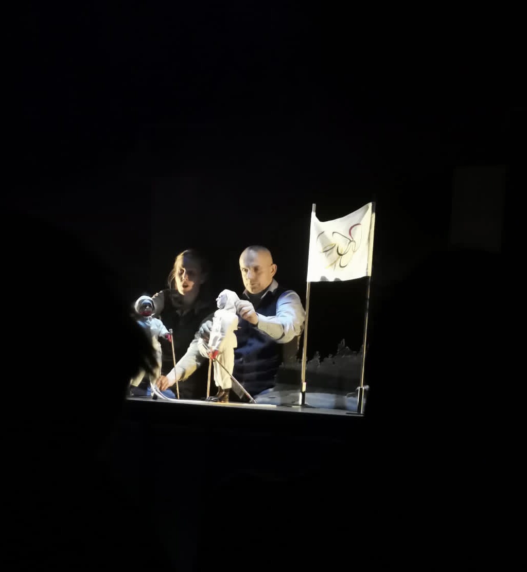 En blandning av skådespeleri och dockteater beledsagat av en ypperlig musikertrio.
