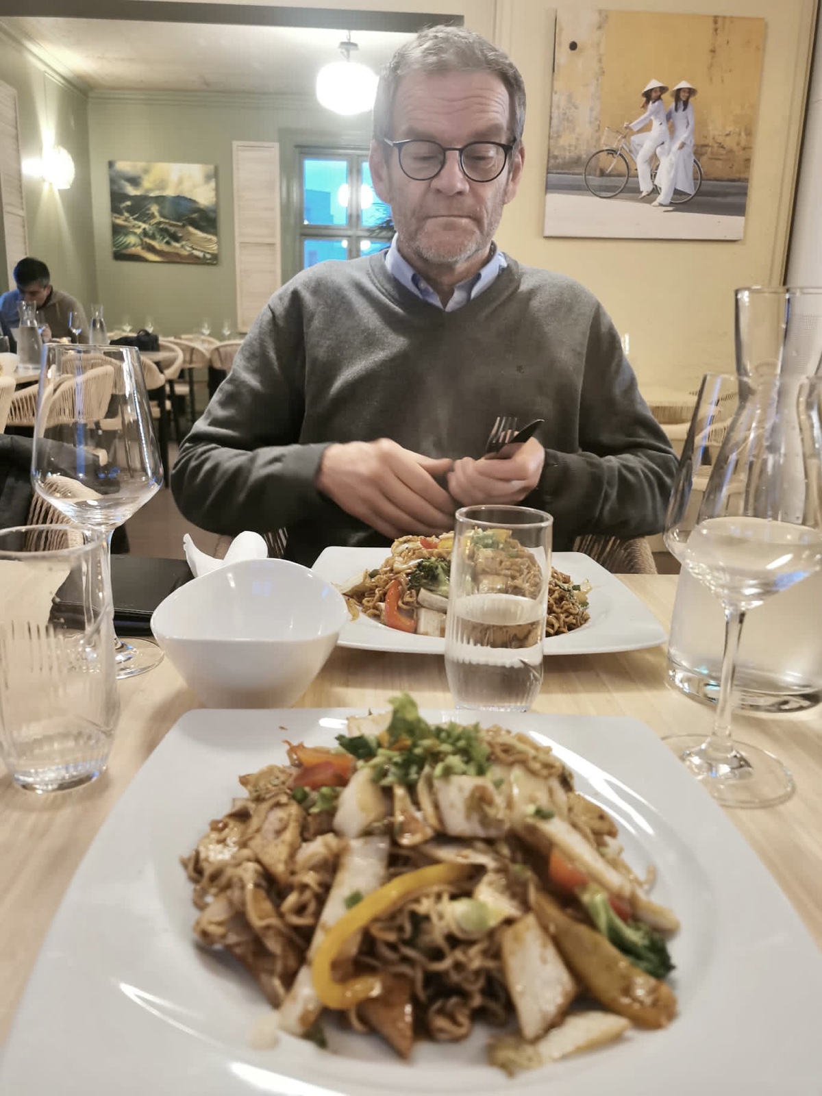 Tillbaka i Oslo går han ännu ut att äta på en asiatisk krog med sin dotter innan han tar flygbussen till Gardemoen. Men det är rusningstrafik och tiden börjar rinna ut.