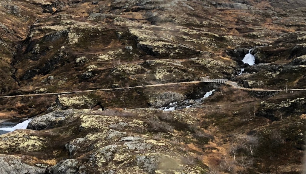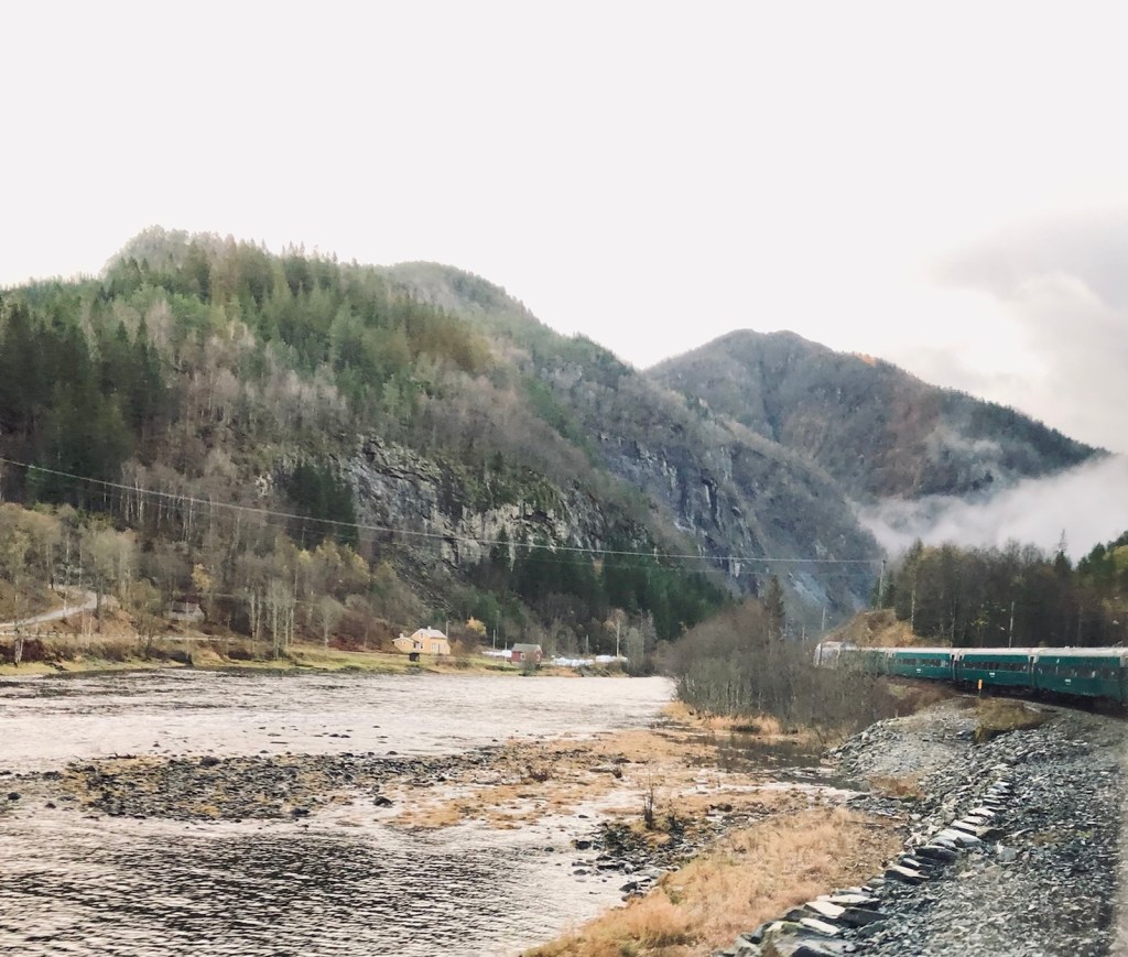Den här gången sitter han i den sista vagnen som har nummer 1. Det var den första vagnen från Oslo. Han sitter dessutom på den andra sidan jämfört med gårdagen så vyerna är nya.