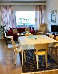 Förmiddagskaffe intas på café Aiju vid Glims med sambo, mor och syster. Därefter lunch på Gäddviks pärla med ex-fru, barn och barnbarn.