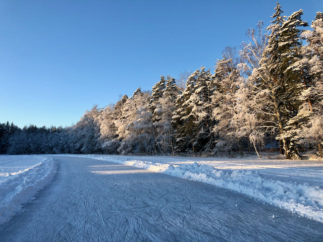 Och det fina vädret fortsätter. Det blir 10 varv runt Gallträsk per skridsko följande dag.