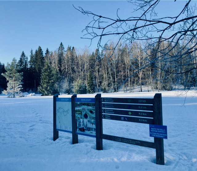 Följer några av dessa dagar som påminner om vår, kalla nätter och soliga dagar. Parkeringsplatsen som farfar brukar anlita när han skidar i Esbo Centralpark är fullsatt under helgen så han parkerar utanför Alepa i stället. Men när han har skidat sina drygt 20 km tar han sig av gammal vana till den vanliga parkeringsplatsen innan han inser sitt misstag och får spänna på skidorna igen för att skida ytterligare 500 m till korsningen före Alepa. Distansmätaren ökar från 20,93 till 21,43, alltså inte tillräckligt för att han skulle kunna avrunda till 22 km i redovisningstabellen. Säsongens totalsaldo är hittills 363 km då det vid samma tid föregående år var 452 km. Förhoppningsvis tar inte vintern slut i rappet.