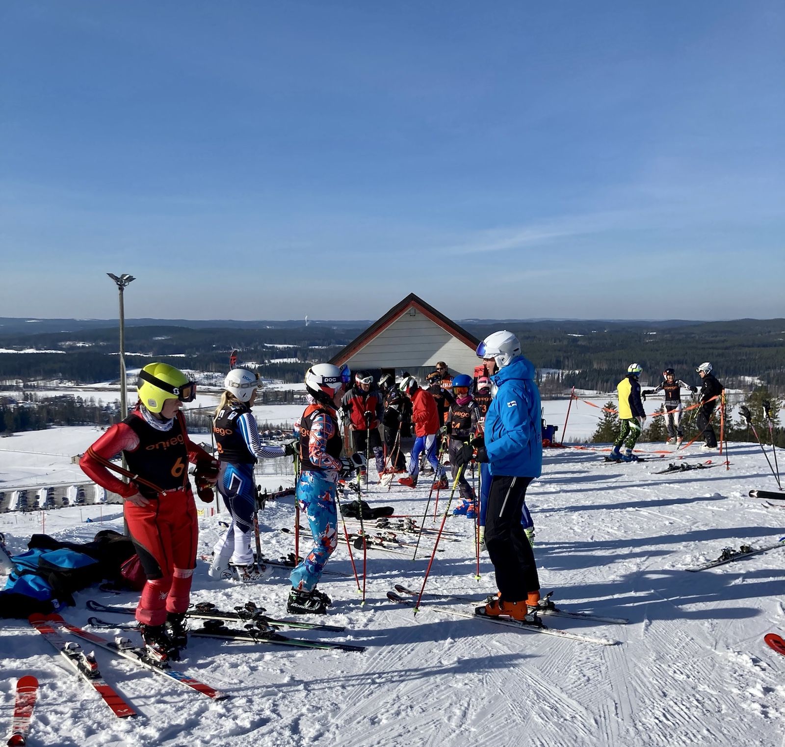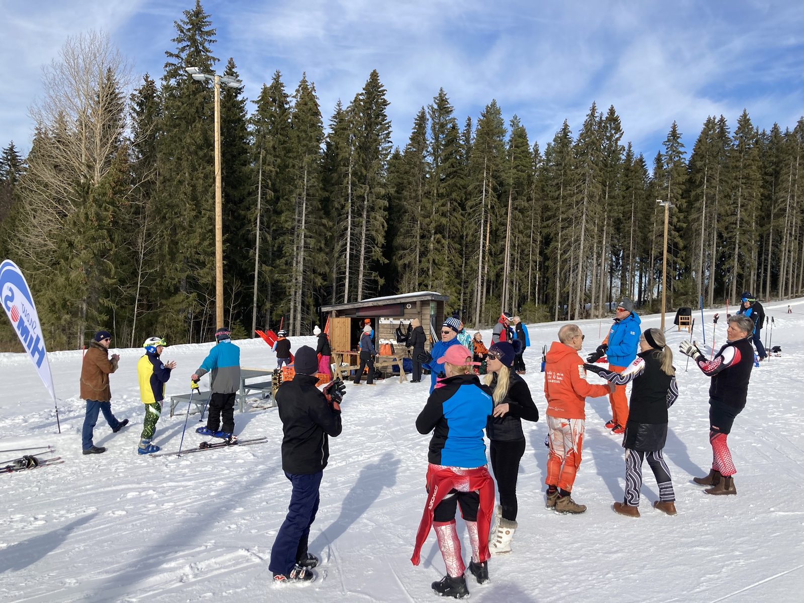 Onsdagstävling: då farfar inte klarar sig mot de yngre låter han sina skidpar tävla mot varandra. Denna gång börjar han med de gamla som Tom har servat. Sen i slutbranten igen. De nya är en halv sekund snabbare. De leder nu 2-0. Å andra sidan är flera av de åkare som körde bägge åken med samma skidor också snabbare i det andra åket. Hanski t.ex. Honom rår inte farfar på längre.