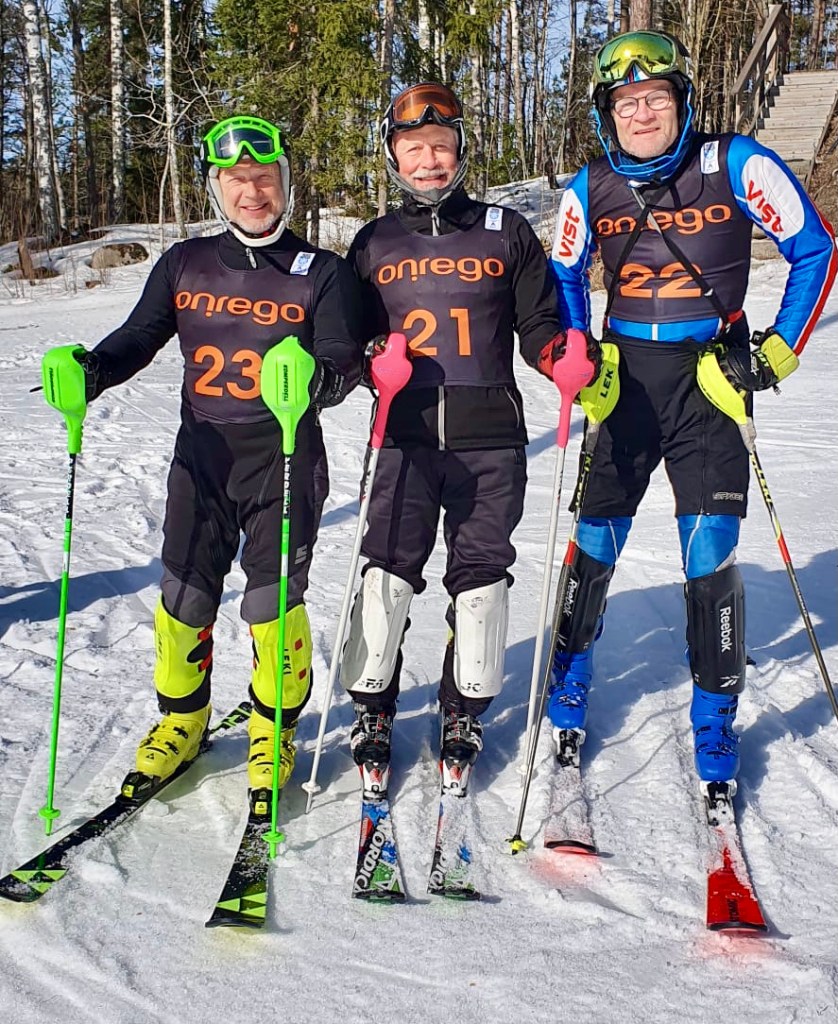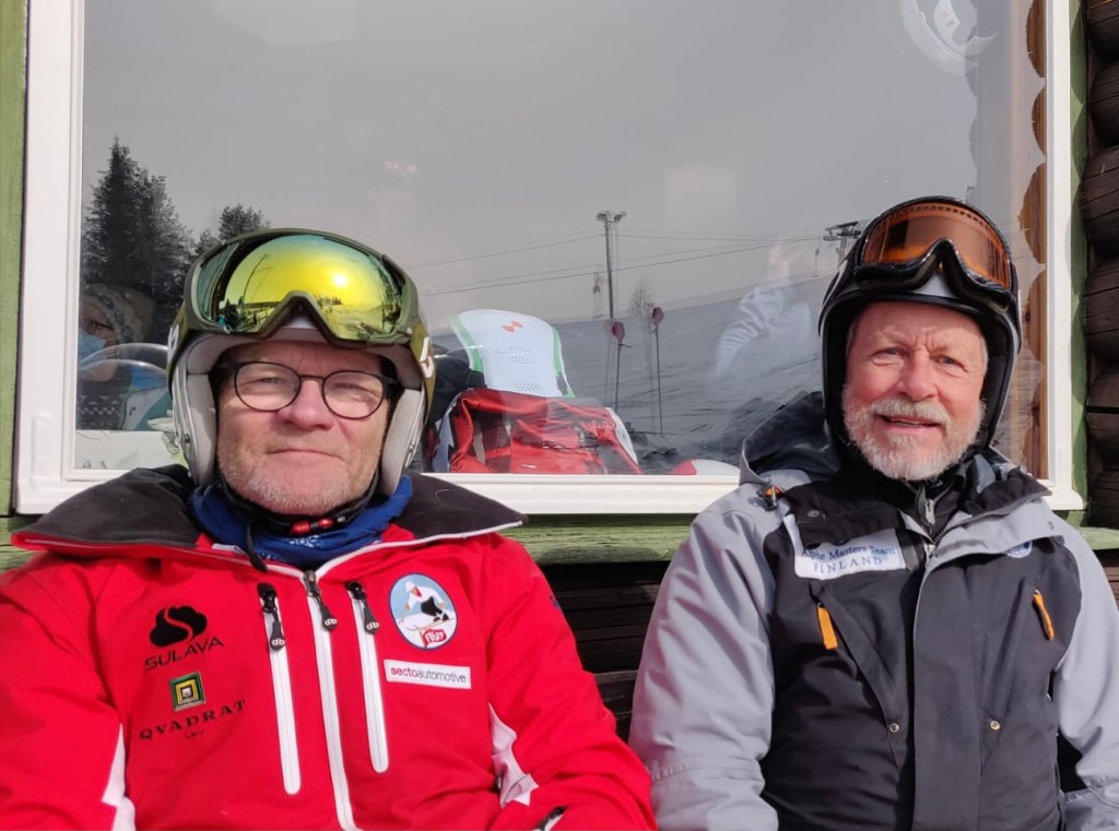 I Masters-Cup får han tävla med sina jämnåriga. Rafu segrar i både slalom och SuP medan Jaska och farfar får slåss om de övriga placeringarna. Flera deltagare är det inte i klassen M-70. Farfar tar silver i slalom och blir omkörd av Jaska i det andra SuP-åket där det således blir brons. Disciplinen SuperSlalom har farfar inte riktigt kommit underfund med. Ibland går det bra, men ofta eländigt. Efter åken vet man i regel vad man kunde ha gjort bättre. Men som syns på bilderna är det inte placeringarna som är viktigast utan sammanhållningen. Och vädret är denna dag idealiskt, backen är hård och solen lyser.