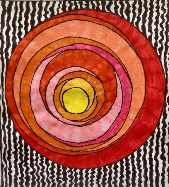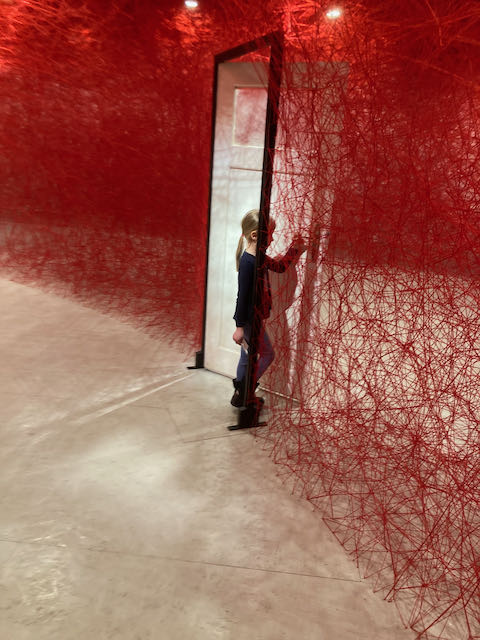 Flickan löper genom utställningsutrymmet så farfar har svårt att hänga med. De går vilse i Daniel Burens färglada labyrint. Barn och åldringar över 70 kommer gratis in så farfar kommer billigt undan, förutom utgiften på varsin glass. Souvenirboden avfärdas med att allt är för dyrt.
