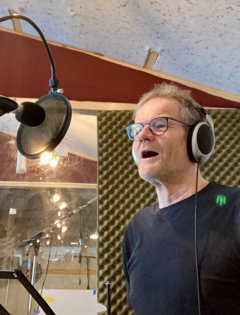 Och så mitt i allt är han i en studio och bandar in sång för en professionell musiker utan att ha en aning om vad det skall bli. I höst lär det skall uppföras…