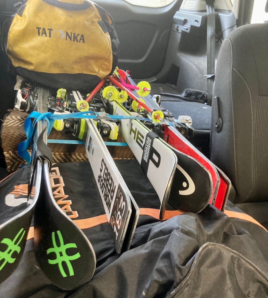 Han börjar sakta göra sig i ordning. Skidorna vässas, vaxas och packas i bilen.