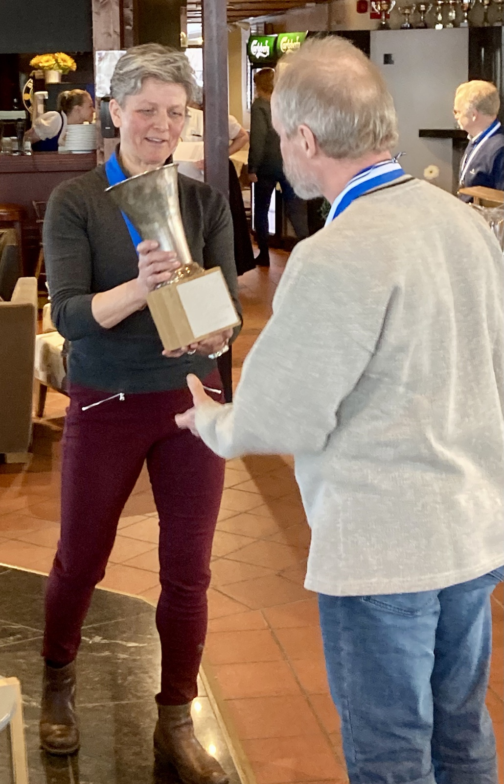 Cup-plaketter utdelas. I 70-årsklassen segrar givetvis Rafu medan farfar tar andra plats. Jari blir tredje.