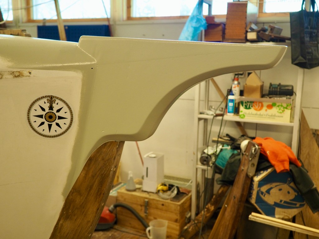 Till Niña har Eddie konstruerat ett imponerande peke, bogspröt, eller vad man nu vill kalla det. Det skall bli intressant att se hur man angör en brygga. Eddie har också gjort ett nytt roder, så han tycker att man skall förtöja med aktern mot bryggan.