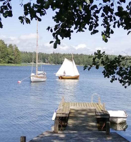 Hemfärden går galant i den sydvästliga vinden, men att kryssa in i det smala sundet mellan Lågören och Simsalö bjuder på svårigheter. Till slut får han vända och försöka den andra, östligare vägen.