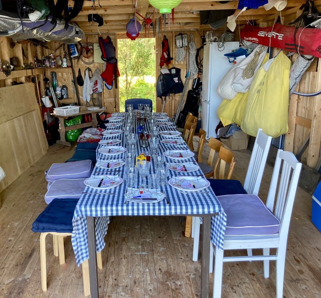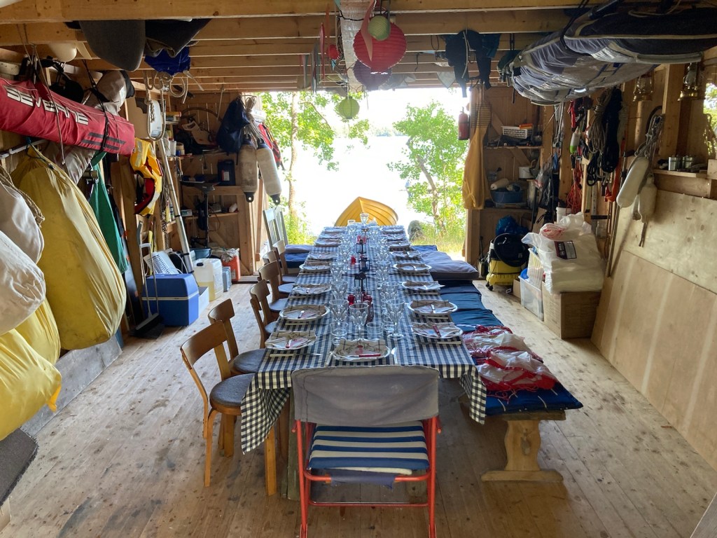 Ett plötsligt påkommet kräftkalas ställs igång för att fira Jakobdagen och Elviras och Kristians vistelses slut. Dukning (igen) i båtskjulet.