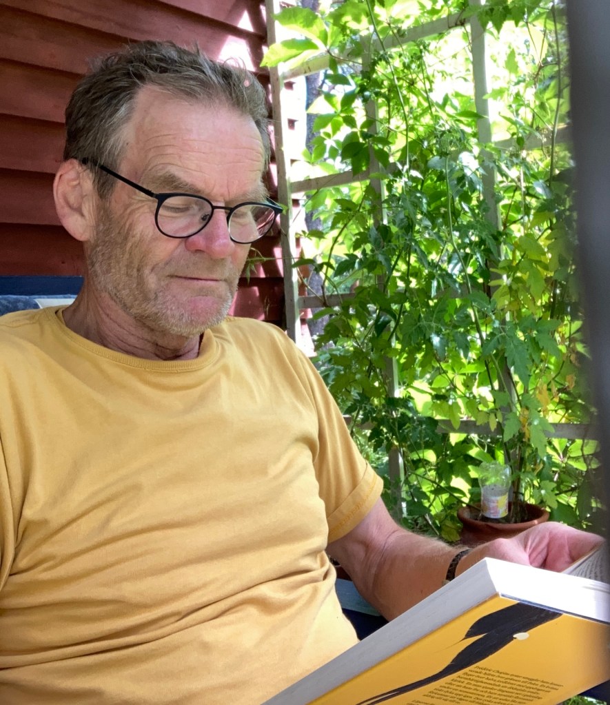 Han är halvvägs inne i boken och har redan glömt hur den började. Han njuter ändå av språket och formuleringarna.