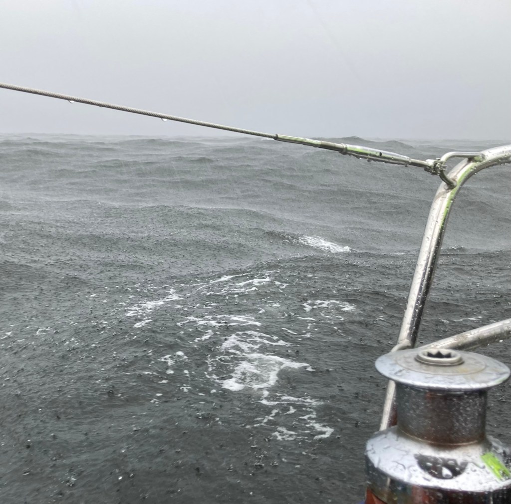 Rapporten lovar förliga vindar med regn. Och för en gångs skull var det just vad besättningen och båten fick. Sydost med upp till 16 m/s i byarna. Först med genua och stor, sedan med bara genua.