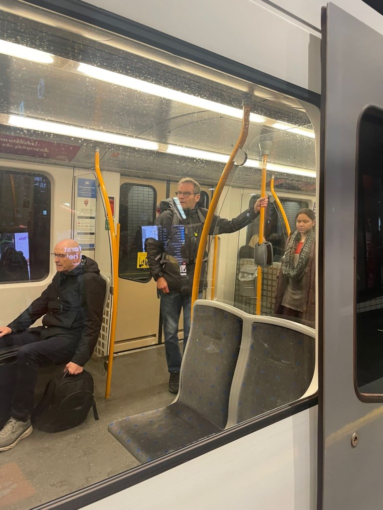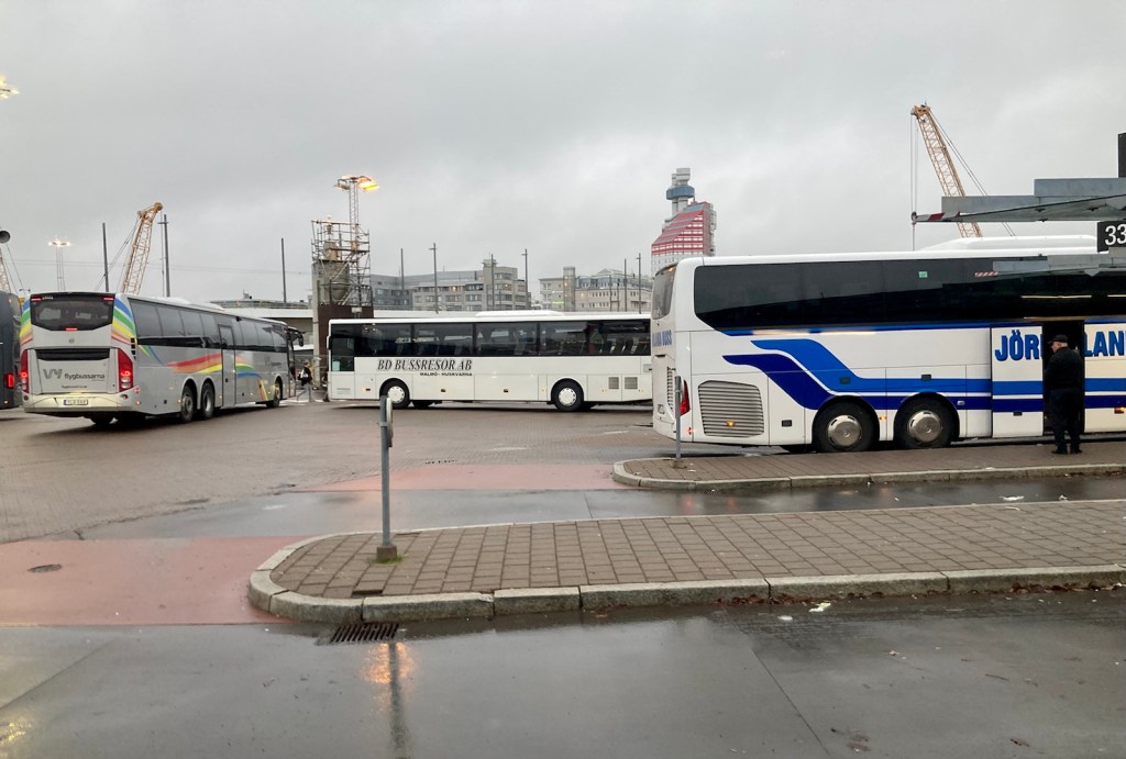Men farhågorna var obefogade: bussen är framme precis på utsatt tid och han hinner bra till tåget.