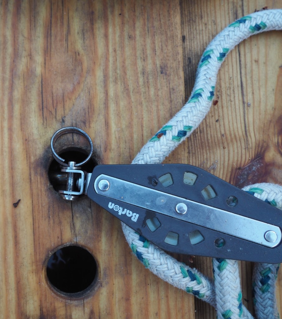En kort seglats i god vind och fart, ända till dess att sprinten som håller storfallets nedre block på plats vrids loss. Det är bara att ta iland igen och fixa fallet med en stadigare ring från nyckelknippan.