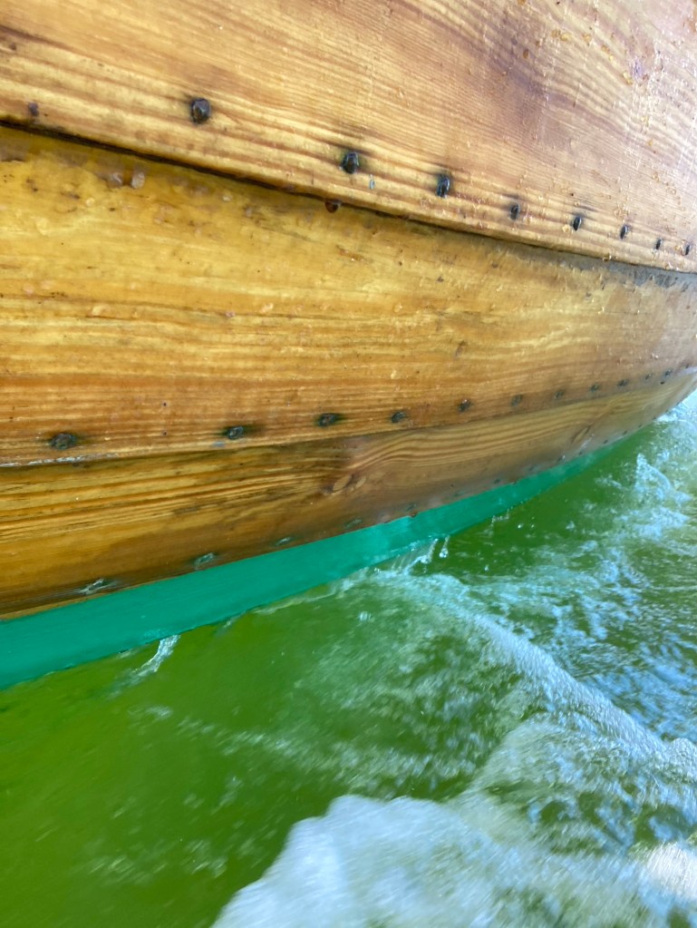 Lätt att landa. Full fart mot bryggan och sedan fram att ta emot. Farkosten är så lätt att den stannar tvärt. Sedan ner med seglen, de är redan torra, men får ändå ytterligare torka i solen innan de packas i säckar. Rodret skall avlägsnas, det är inte behandlat med anti-fouling.