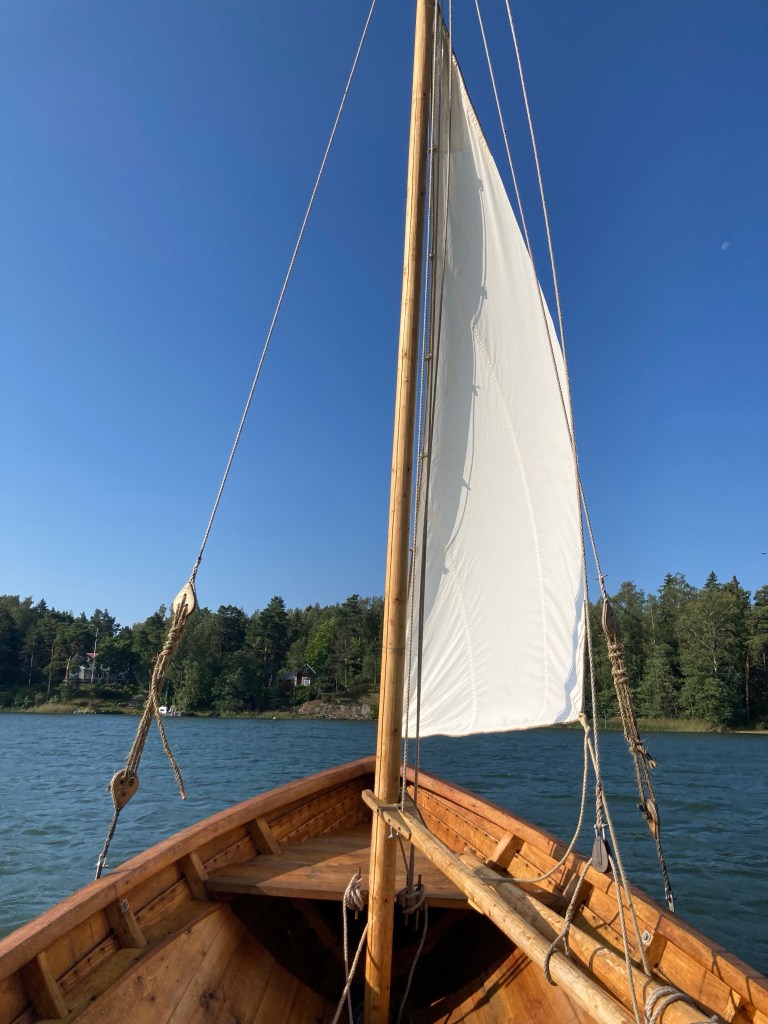 Det blåser upp till storm från öster. Jullen flyttas till läsidan av holmen.