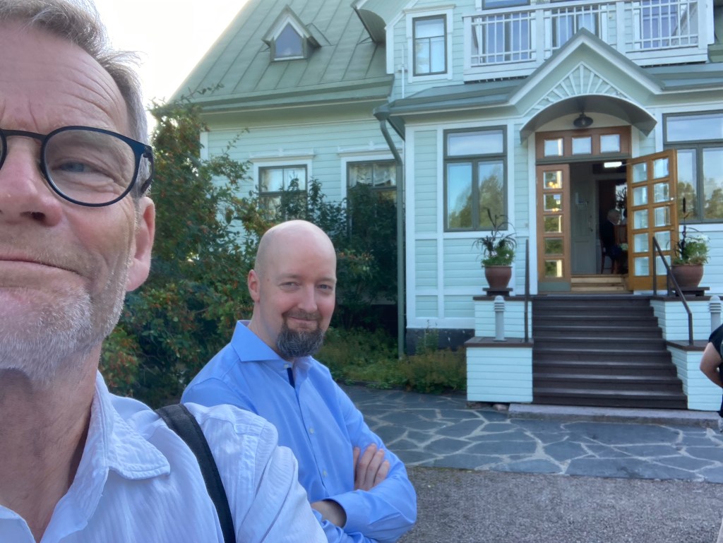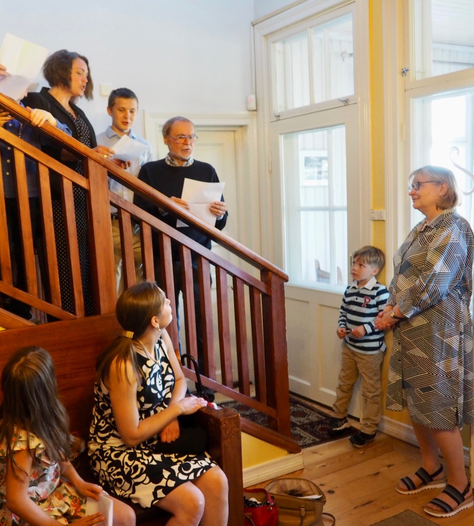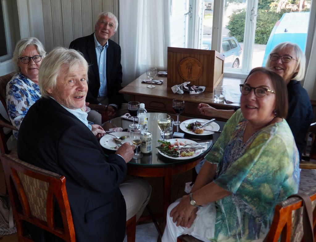 En fin fest i vackert väder. Dottern Ninni har bokat läkaresällskapets residens och ordnat med förberedelser och efterstädning. Själv hjälper till där det behövs.