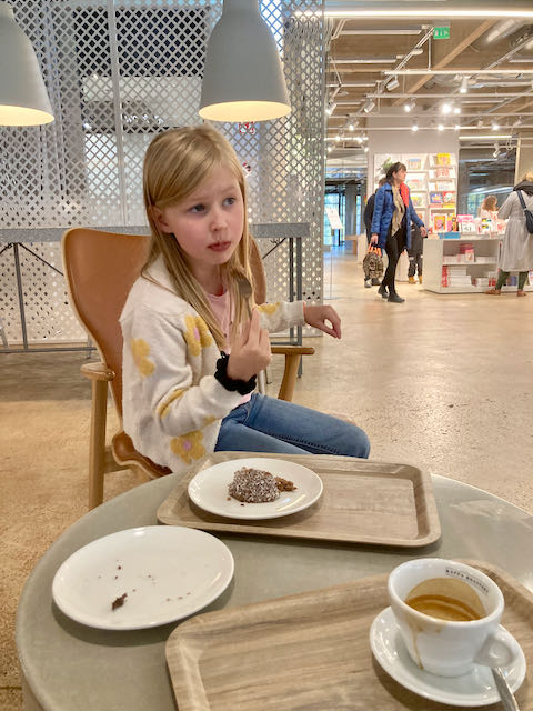 Efteråt blir det kaffe för farfar och bakelse för barnbarnet.