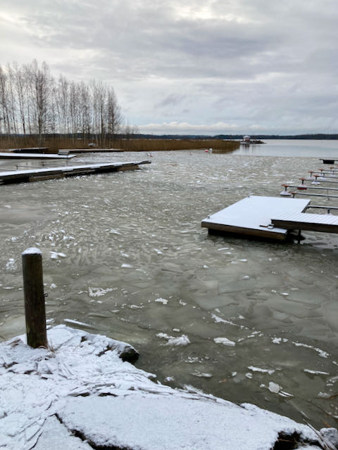 Så ett varv via stugan där isen har frusit på potten.