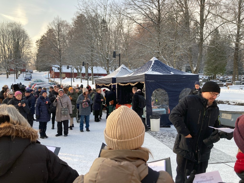 Det blir traditionsenlig sång under adventmässan. Efteråt glöggservering utanför kyrkan där kören sjunger några sånger till.