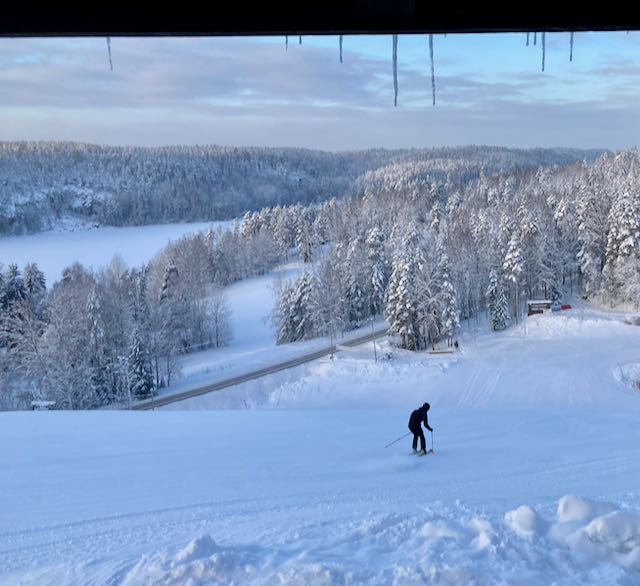 Vädret har varit och är vintrigt vackert. Förkylningen har sakta börjat ge med sig så att han försiktigt kan bege sig ut i spåren och backarna igen.