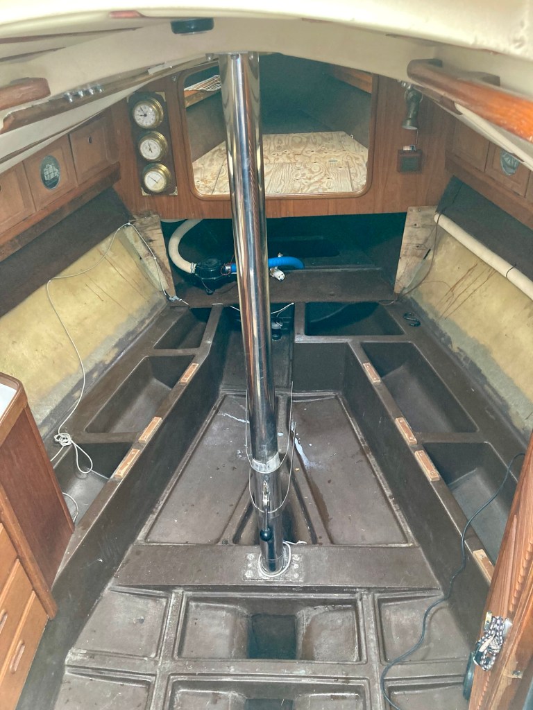 Städandet ombord fortsätter. Ställvis mycket ingrodd lort! Båten töms på prylar. Det kommer fortfarande in vatten uppifrån. Läckan lokaliseras.
