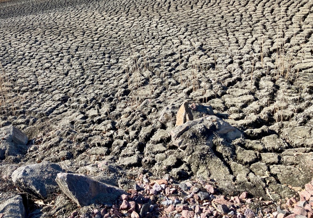 På vägen dit finns ett område som ser ut som ett månlandskap. Det är antagligen dy som tagits upp när man har muddrat.