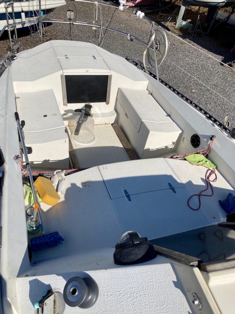 Den har delvis legat otäckt och är i behov av vård. Det finns ännu mycket att göra innan båten är seglingsklar. Och bra så, projektet lever.