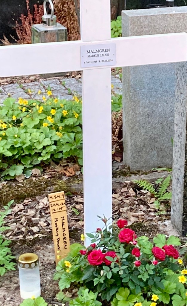 För att straffa sig cyklar han till Esbo, tar tåget till Sjundeå och cyklar till stugan. Han hinner lacka rorkulten en femte gång och vattna potatislandet innan han tar de kvarglömda sakerna och cyklar tillbaka. Det är nämligen körövning på kvällen och han klarar fortfarande inte av sitt soloparti i ”Morgondimma”. Efter övningen besöker de Markus grav som är i urnlunden invid kapellet där de övar.