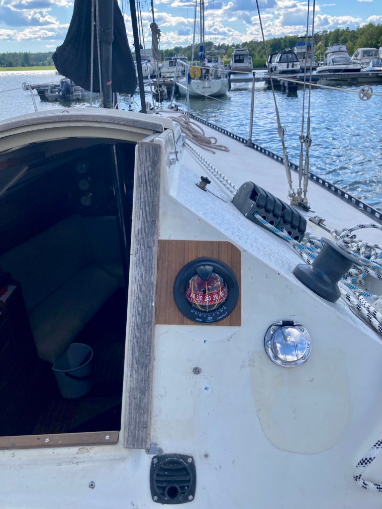 Kompassen monteras, lite snett och osymmetriskt, men så är ju en segelbåt sällan rak.