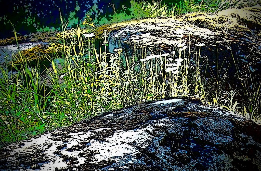 Nu har han målat, försökt avbilda vegetation, börjat, fortsatt. Det blir inte färdigt, då han kommit en bit på vägen inser han hur han egentligen borde gå till väga, men han gör inga nya försök utan målar över för att dölja misstagen. Det är ett tidsfördriv, verket kan bli liggande några dagar, framme, till påseende. När han uttråkad passerar kan han plötsligt få ett infall, ta fram akrylfärgerna och måla tills han tröttnar eller blir hungrig.