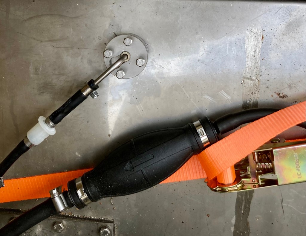 Med fasa ser den oinsatte på medan fackmannen borrar hål i den välfyllda bränsletanken.