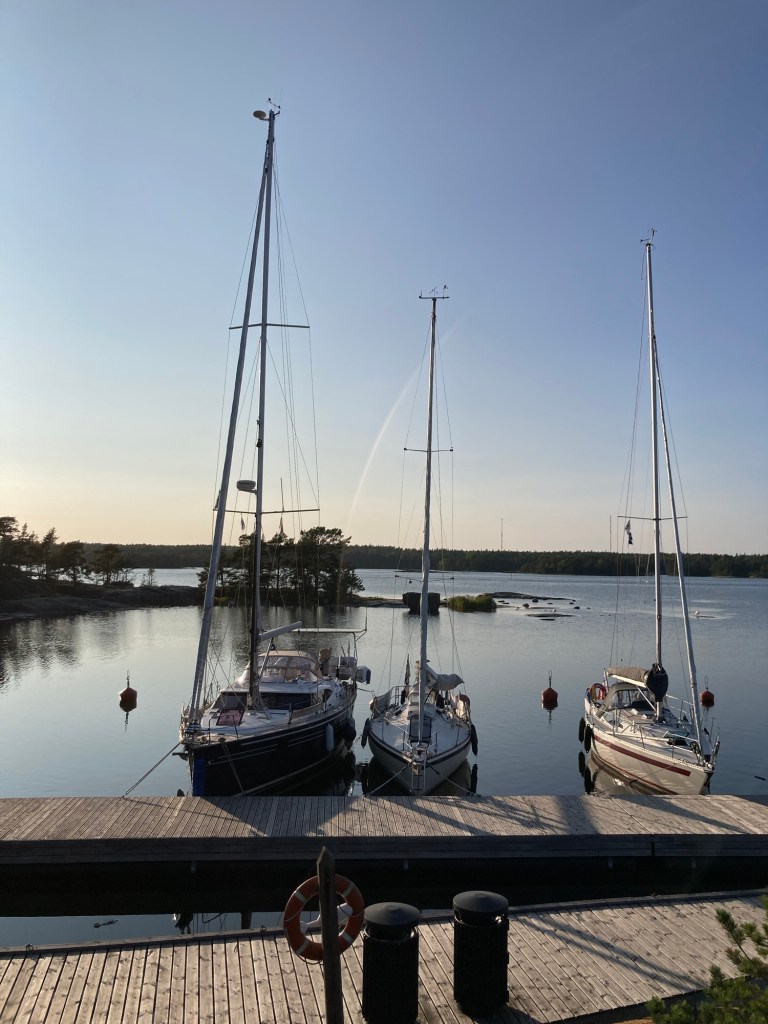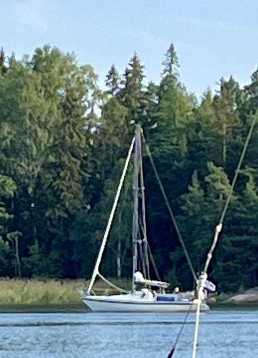 En stor fransk båt lägger sig bredvid. Ägaren är pratsam och berättar att han har seglat från Frankrike via England och Danmark.