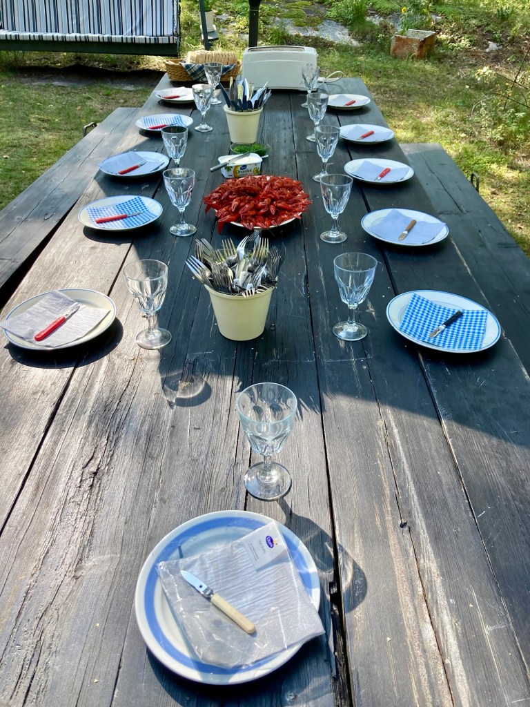 Diverse jubilarer firas, på lördag blir det hembakt pizza så kräftkalaset flyttas till söndag.