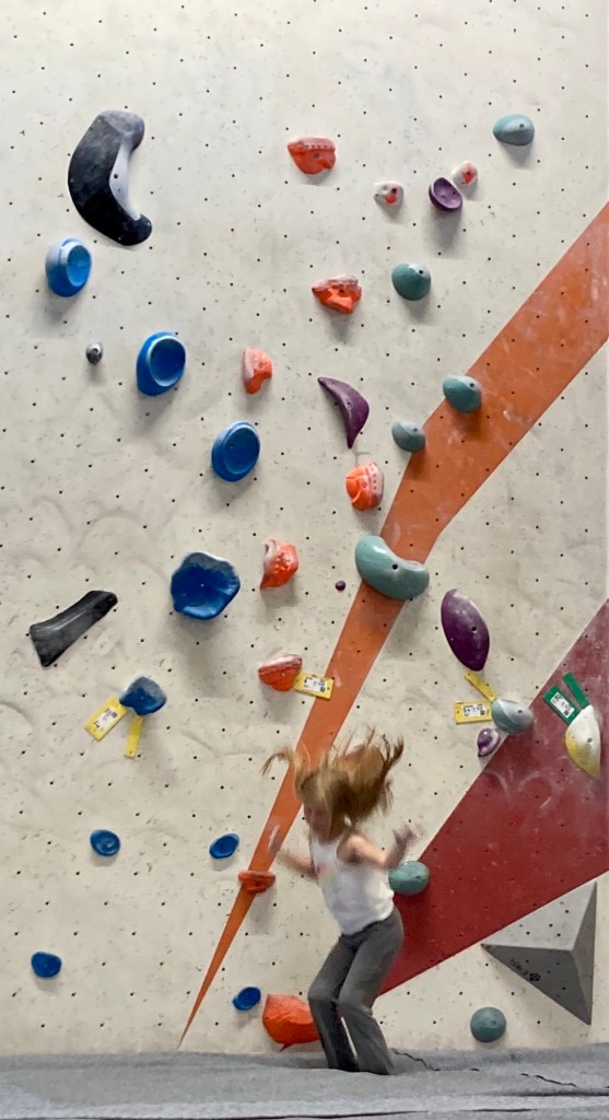 Han har lovat ta barnbarnet till Bouldercenter för att klättra. Det gillar hon.
