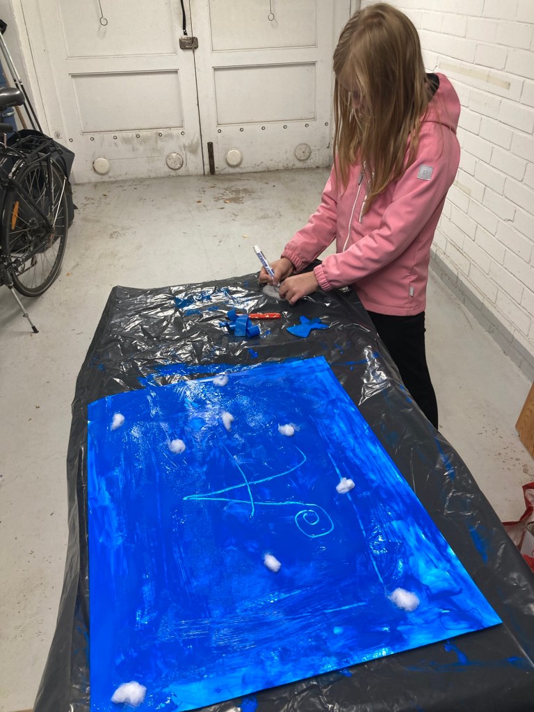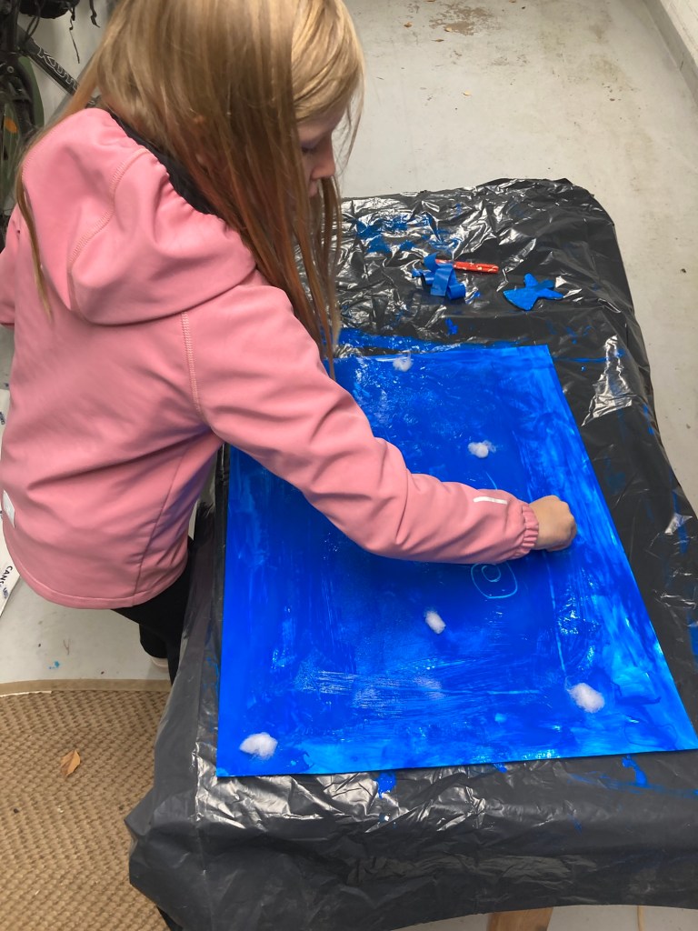 Veckans konstprojekt är enfärgat. På så sätt undviks överdriven färgblandning.
