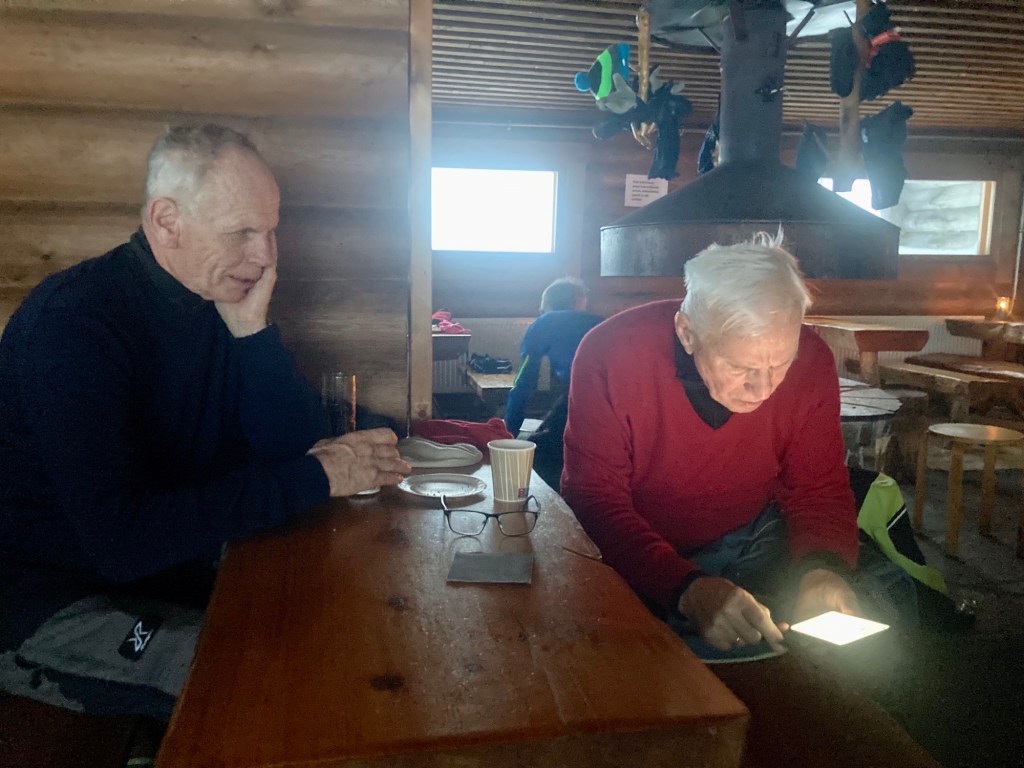 Att åka till fjälls var en ypperlig idé. Han stortrivs och kan inte se sig mätt på allt vad naturen har att bjuda. Att kunna åka skidor i vintriga förhållanden är något han har längtat efter. Och att få likasinnade med sig höjer på upplevelsen. Det är lågsäsong och stället har inte många andra gäster. Gubbarna får sköta sig själva, koka mat, elda bastu och delta i gårdsarbetet. Under uppsikt av Tobi förstås, han är son till ställets grundare Gunnar Stenfors, som var pionjär när det gäller Lapplandsturism. Mellan skidturerna sköter Tobi bokningar, materialanförskaffning och service.