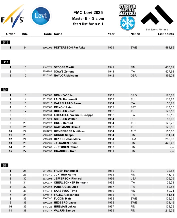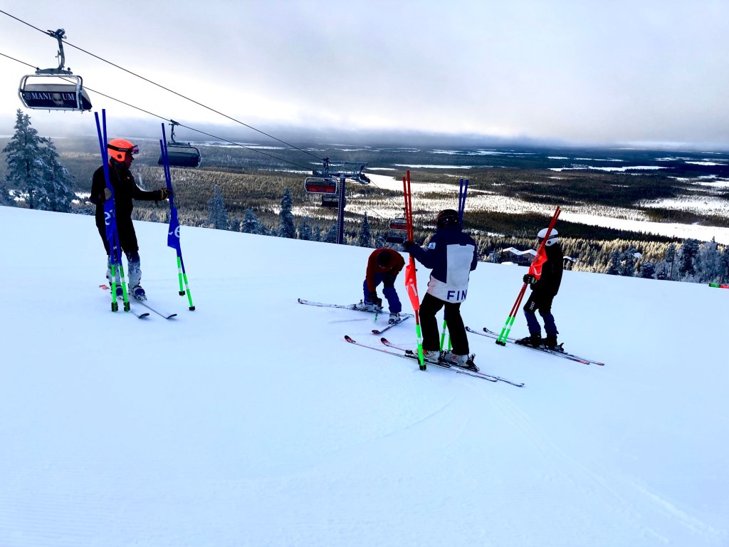 På eftermiddagen blir det slalomträning. Då den ena skidan har lossnat två gånger i banan inser han att han måste spänna bindningarna. I södra Finlands mindre backar har skidorna aldrig lossnat. Bra att det kom fram i träningarna och inte i tävling.