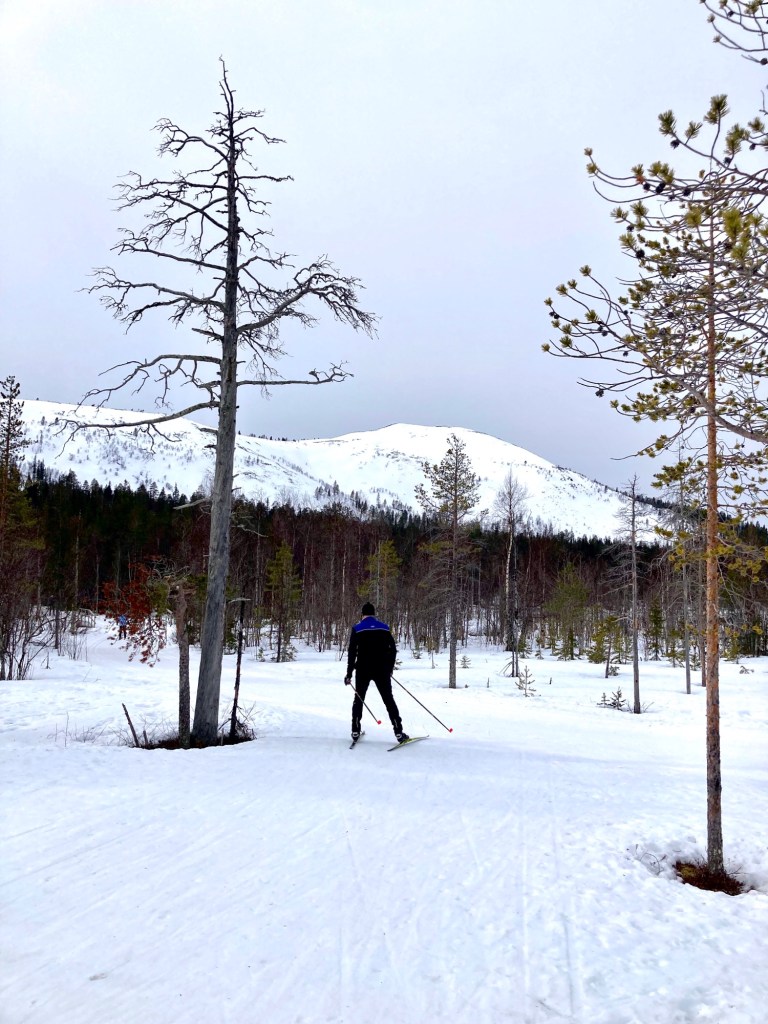 Alpina masters FM ordnas på Suomu, men han har valt att åka till Äkäslompolo för att skida terräng. Det känns mera kravlöst, det finns inget behov att prestera. Dessutom är utrustningen lättare, nu har han endast skidor och pjäxor för klassisk åkning med sig, stavar och vallningsgrejor lämnade, glömde, han på Stena i januari.