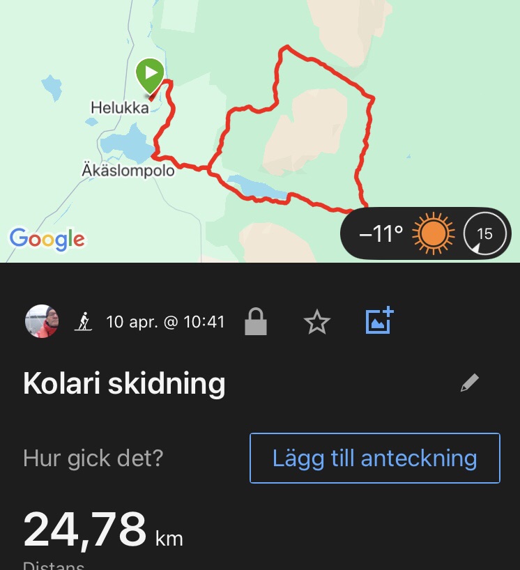 Men efter det borde han ha gått in och värma sig, men det gör han inte, så när han fortsätter känner han sig kall och får inte riktigt upp värmen fast det fortsätter uppåt. Han siktar på upplevelsecentret Kellokas, men när han kommer dit blir han besviken.