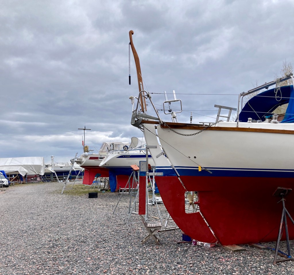De båtar som ännu är på det torra börjar nu vara färdigt målade och klara för sjösättning. Så också Susan.