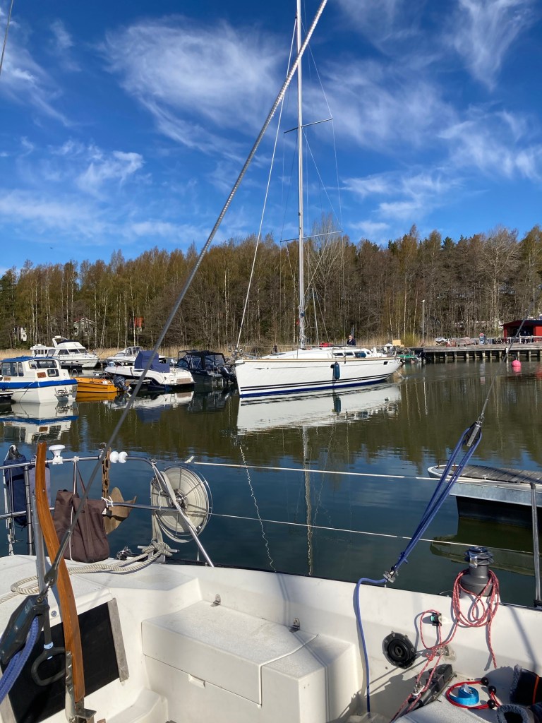 Nu följer utrustande och iståndsättande. Seglaren tillbringar hela dagen i hamnen, Håkke kommer med segel och annan utrustning men mycket lämnas till en senare tidpunkt. Det är i varje fall skönt att ha kommit så här långt!